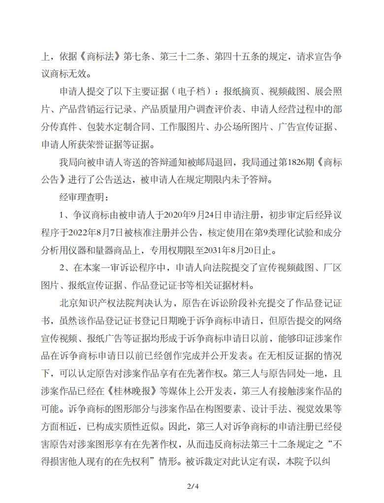 申请人不服商评字[2023]第00002■号《关于第569号“桂贺及图(指定颜色)”商标无效宣告请求裁定书》,委托我司(邦唐邦(北京)知识产权服务有限公司重庆分公司)向北京知识产权法院提起行政诉讼。北京知识产权法院判决,撤销被诉裁定,并责令国家知识产权局重新作出裁定。